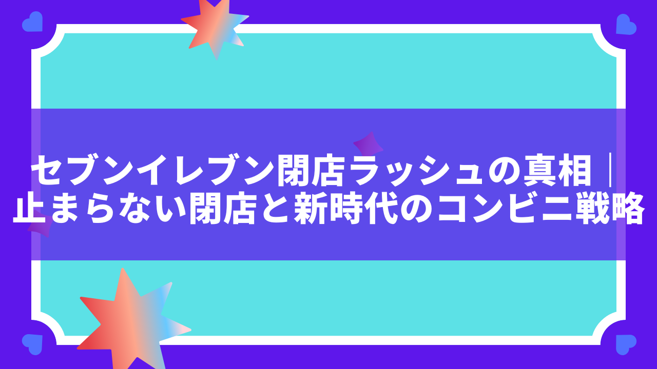 本記事では、最新データをもとに「閉店ラッシュの本当の理由」と「セブンイレブンが挑む再生戦略」を徹底解説。