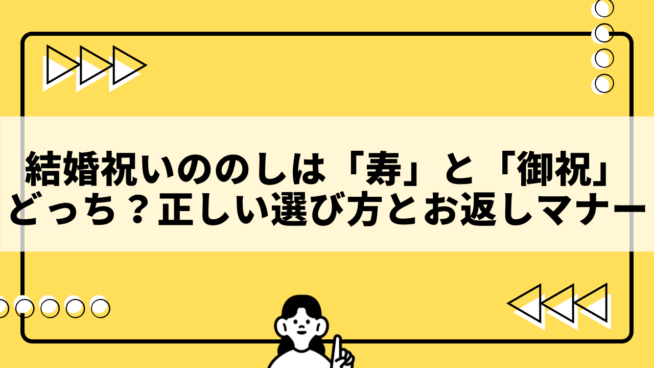 今回は、結婚祝いののしに使う表書き「寿」と「御祝」の違いや、お返しのマナーについて解説しました。