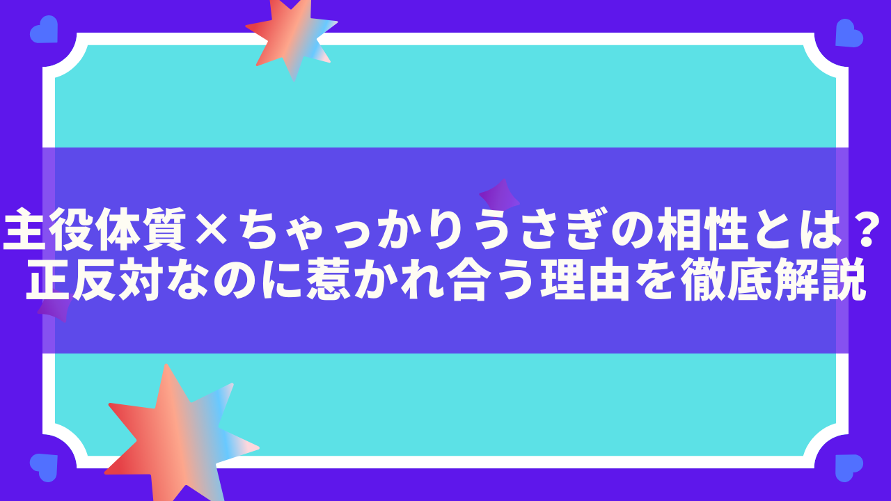 この記事では、主役体質とちゃっかりうさぎそれぞれの特徴から、相性の良さ・注意点・長続きのコツまでをわかりやすく解説します。