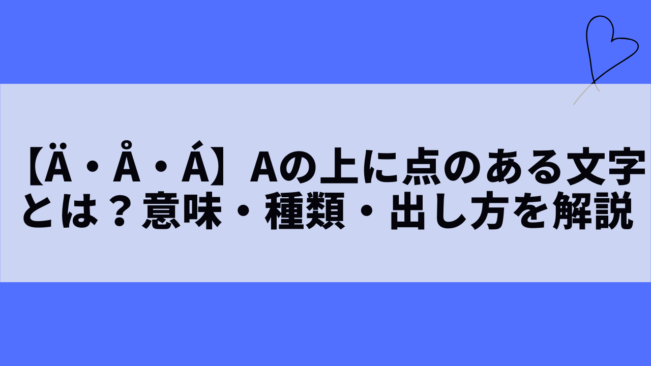 この記事では、aの上に点・丸・線が付く文字の種類や意味、使われる国と言語、そしてパソコンやスマホでの出し方までを総まとめ。