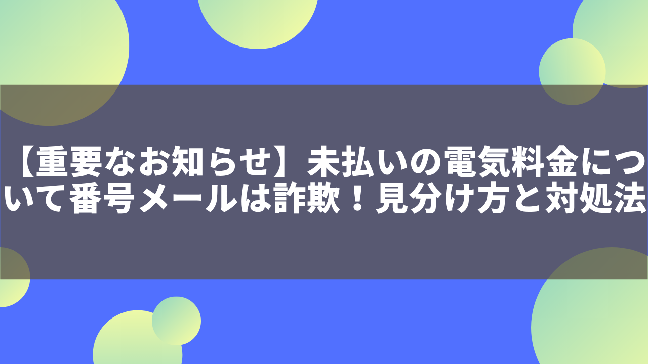 「【重要なお知らせ】未払いの電気料金について番号」というメールを受け取り、不安になった方も多いのではないでしょうか。