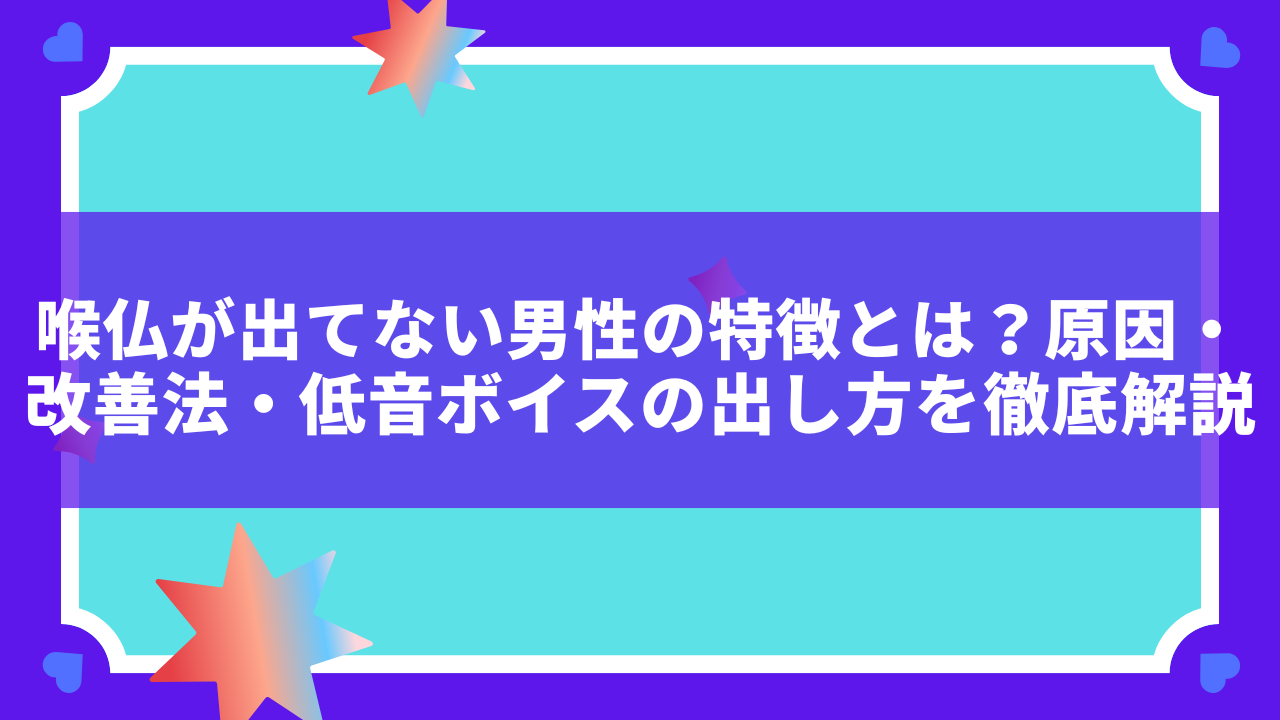また、喉仏が出ていなくても深みのある低音ボイスを出すための発声テクニックも詳しく解説。