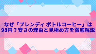 スーパーで見かける「ブレンディ ボトルコーヒー98円」の特売。普段150円近くする商品が激安で並んでいると、「品質は大丈夫?」「なぜこんなに安いの?」と気になりますよね。この記事では、その疑問にとことん答えます。メーカーやスーパーの戦略、流...